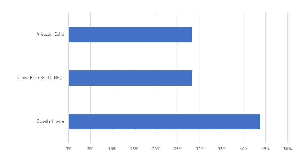 1位はGoogle Home、2位はLINE Clova FriendsとAmazonEchoという結果になりました。