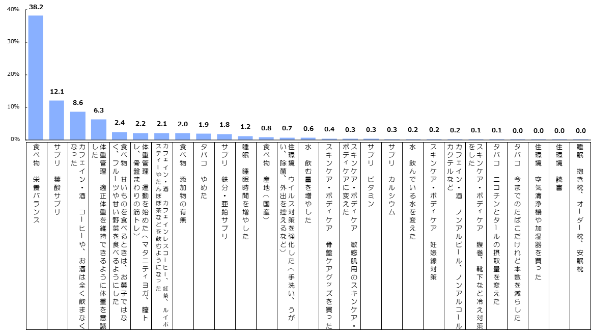 食べ物や栄養バランスへの意識の変化が1位。続いて栄養補助のサプリが2位に。