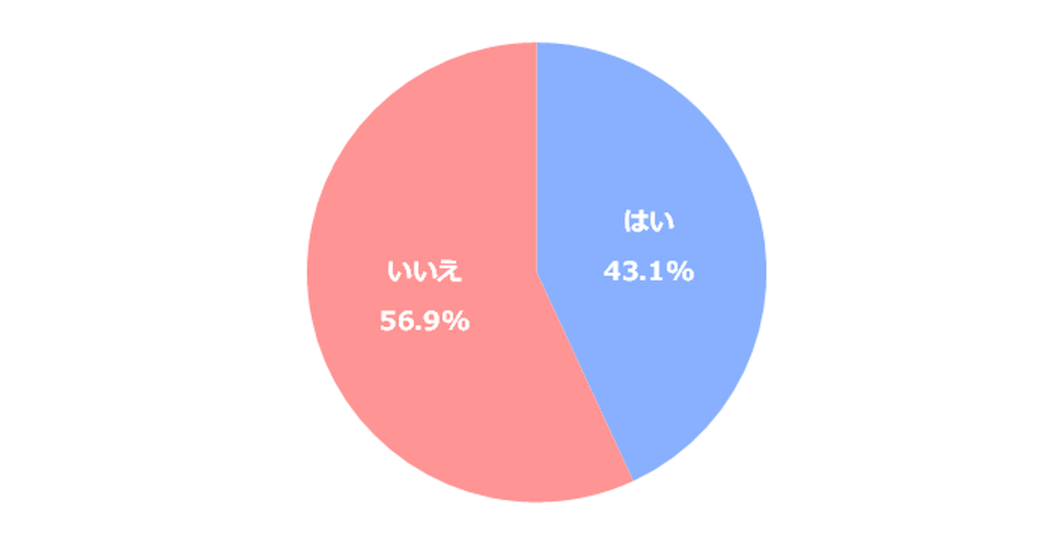 「はい」と答えた方が、43.1%。確かに日常生活の中では、さまざまな物に囲まれて暮らしているので、仕方ないと思ってしまいがちですが、今一度、赤ちゃんの周りに地震によって落下してくる物がないかチェックしましょう。