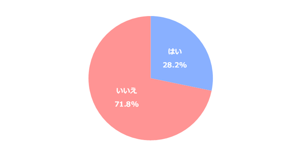 「はい」と答えた方は、28.2%。セットになっている市販の非常持ち出し袋には、子供用のグッズは入っていないので、中身の点検が必要です。お子様に必要なものは追加で購入し緊急時に備えておきましょう。