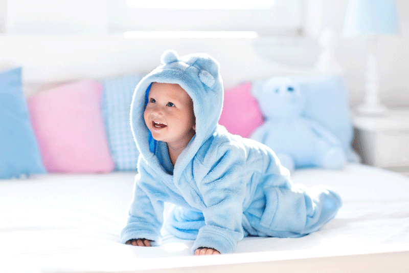 は正しいですが、湿度もとっても重要です。高温多湿になればなるほど汗は出やすくなりますから、赤ちゃんと一緒に過ごすお部屋は、湿度調整もお忘れなく。お部屋に除湿機を置くなど、おおよそ50〜60%くらいの湿度を目安に、汗をかきにくい環境をととのえましょう。
