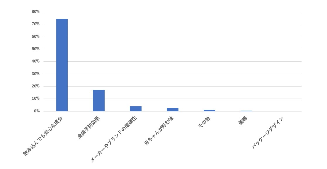 こちらは「飲み込んでしまっても安心な成分」と回答されたママが78%。