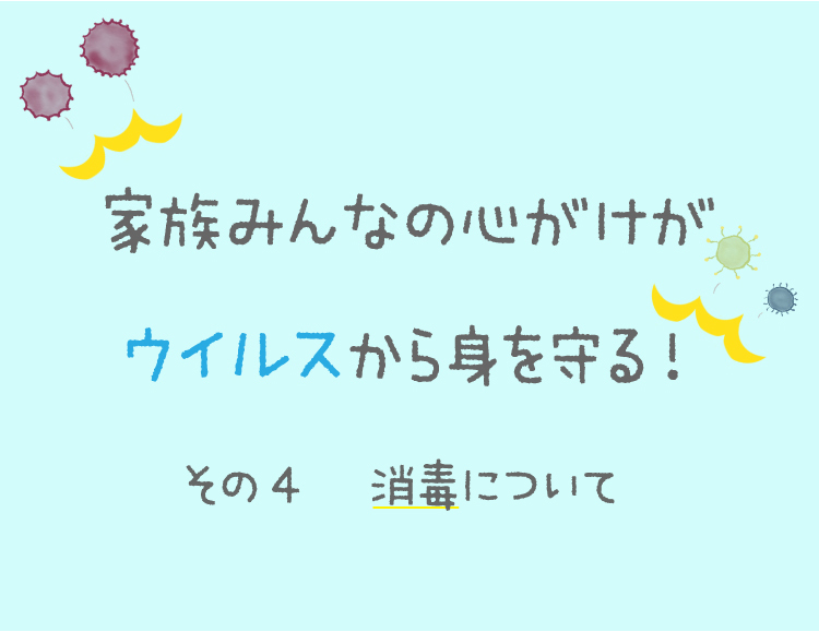 続いて、手洗いとセットで行う「消毒」についてのお話をしたいと思います。手洗いと同じくらい大事なことですので、ぜひご覧くださいね。