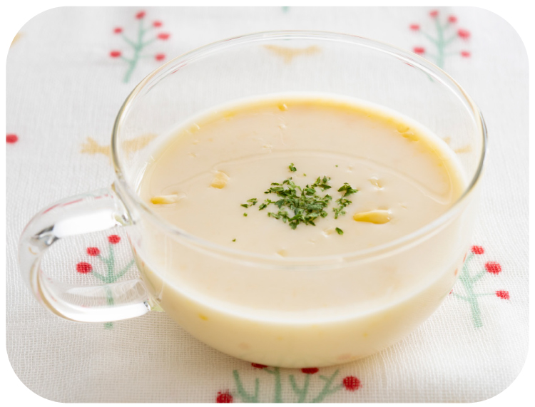 なめらかな舌触りで食べやすく、コーンの甘みを感じられるスープなので、小さなお子さんもおいしくいただけるでしょう。豆乳がない場合や豆乳がちょっと苦手という方は、牛乳で代用してもOKです。材料さえそろっていれば、災害時など、いざというときの防災ごはんとしても役立つので覚えておきましょう。