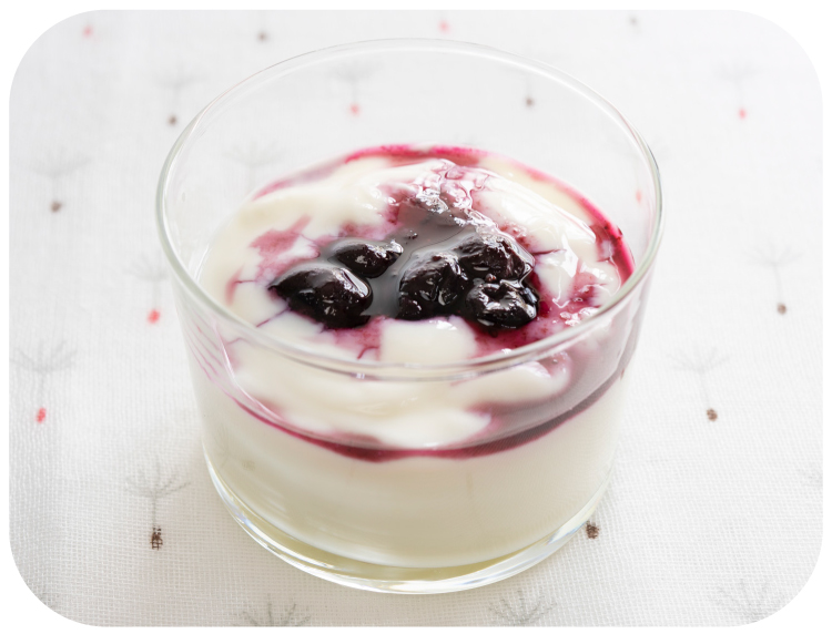 妊娠中の目が疲れやすい時期には、ブルーベリーなどの視力の回復に効果的な食材を。ブルーベリーと砂糖を合わせてレンジでチンすると、果汁たっぷりのソースに大変身♪ ヨーグルトの乳酸菌には、腸の働きをととのえたり、免疫力を高めたりする効果が期待できます。ブルーベリーソースに砂糖を使うので、無糖のヨーグルトを選ぶとカロリーを抑えられます。