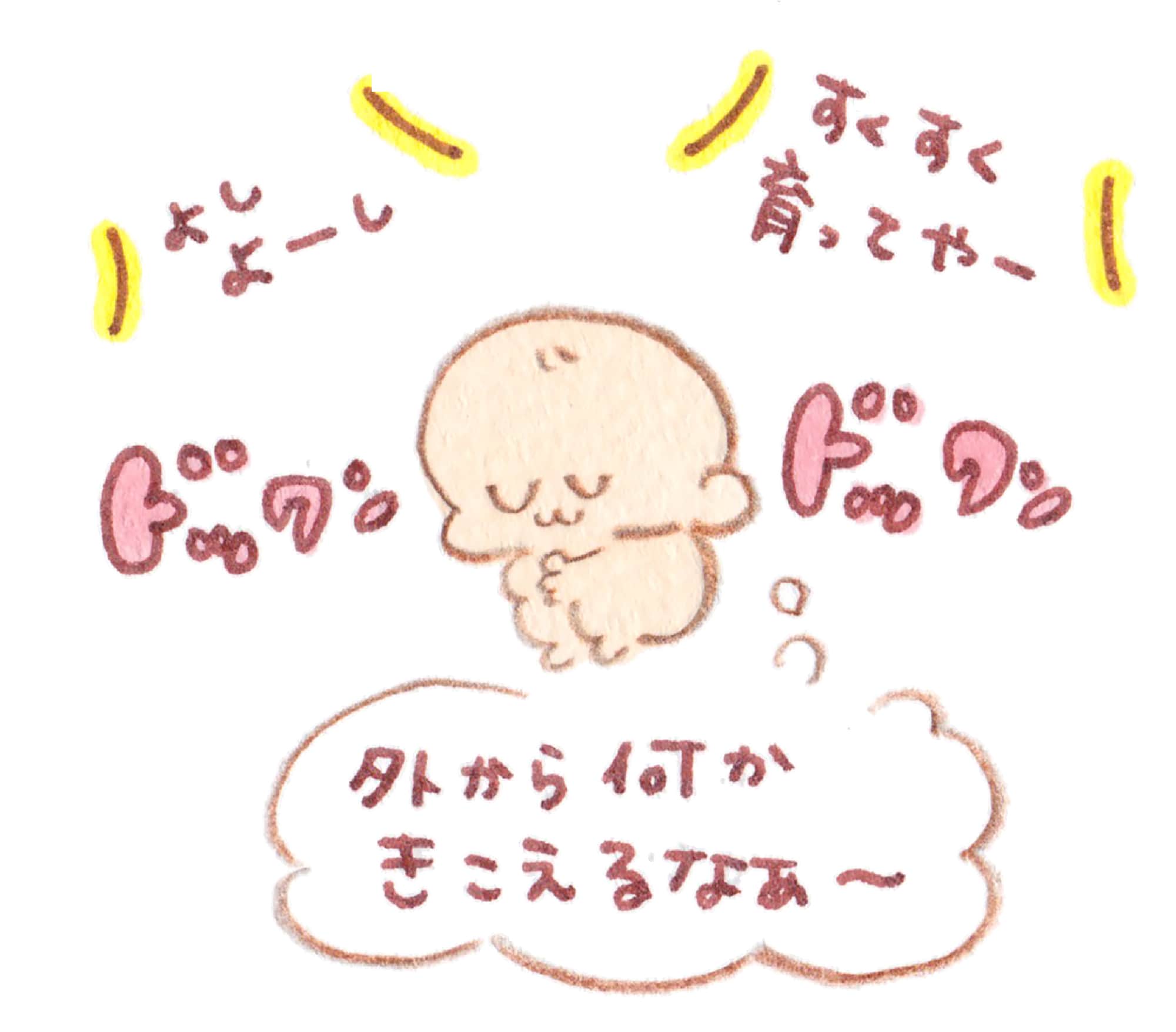 おなかのなかでは、ママとパパの声は「音」として伝わっています