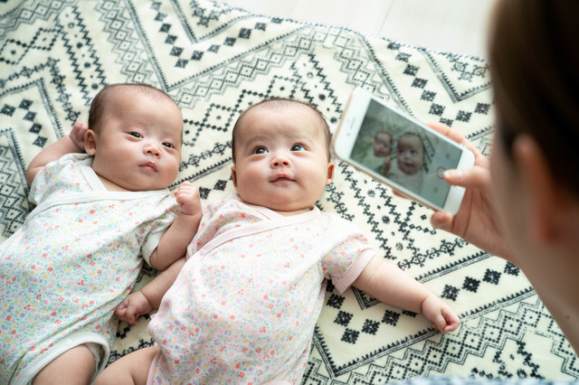 生まれてすぐの赤ちゃんの目は、大人のようにはっきりと周囲を見ることができずに、ぼんやりと見える程度です。焦点があうのは、抱っこをされておっぱいを飲んでいる位置からママの顔までの距離で、ママの顔はしっかりと認識できています。1ヵ月になると白黒のものが分かるようになり、2ヵ月ごろに色や形を認識しはじめ、3~4ヵ月になると、人の顔やおもちゃを目で追ってみる「追視」をするようになります。