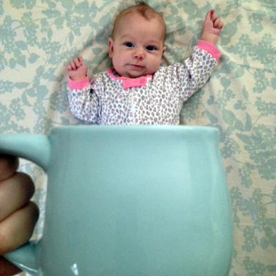 ベビーマギングは、まるでマグの中に赤ちゃんがいるように見える楽しいお写真です。遠近法を使うことで実現するトリック写真。この撮り方もインスタで流行っていますね。