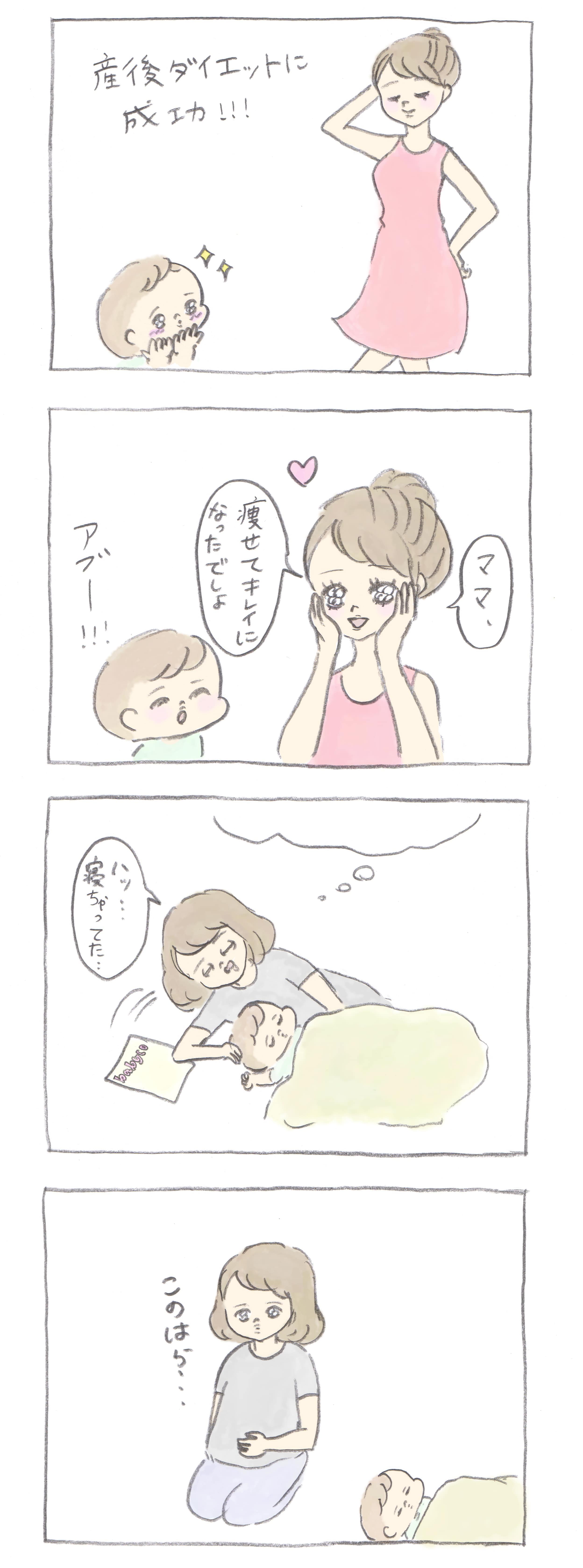 babycoの表紙を描いていただいている、キュートで面白い子育てイラストが人気のイラストレーターぎゅうにゅう(@gyuunyuu_umai)さん! babyco vol.44の特集テーマである「産前産後のダイエット」をお題に、表紙から続くWEB限定4コママンガをお楽しみください。