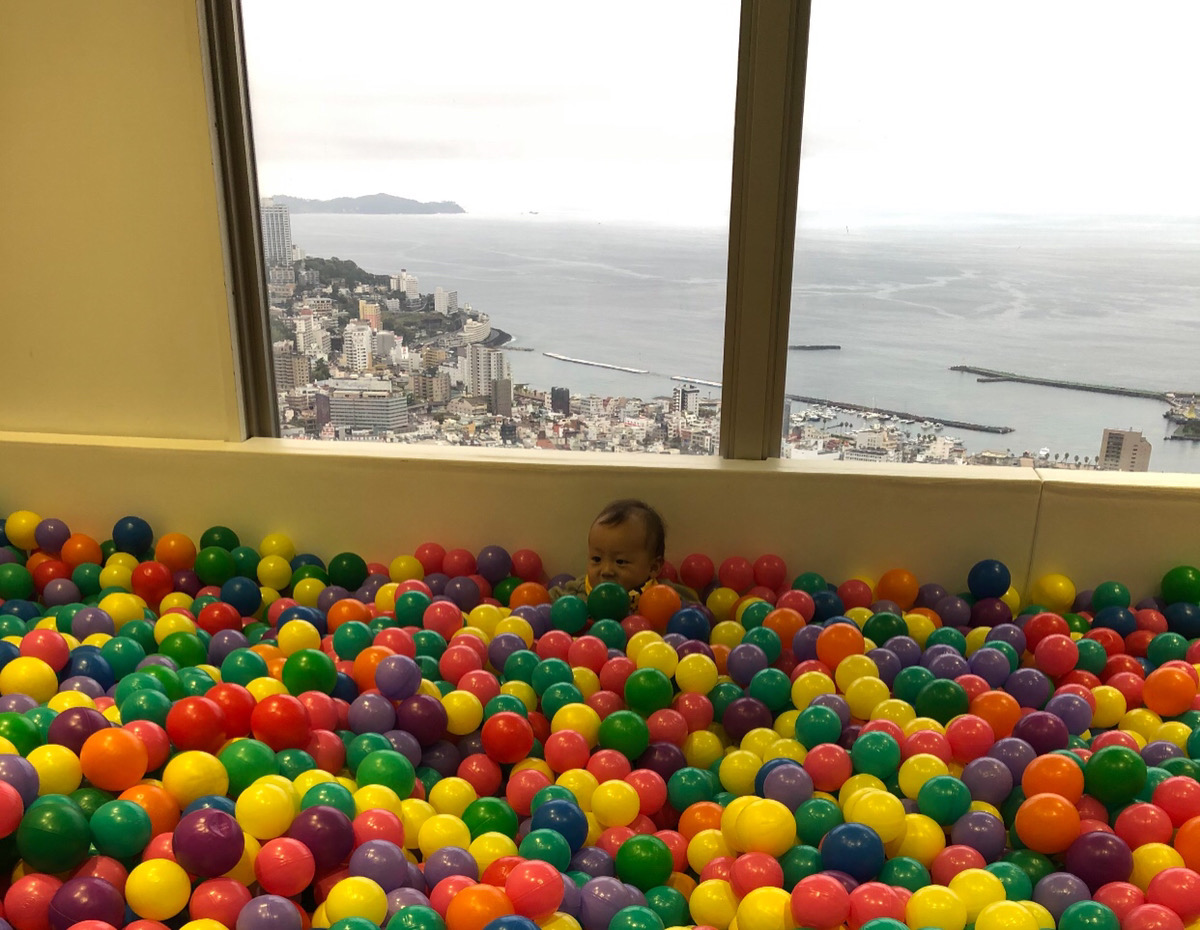おおきな窓のある開放的なキッズルームには、カラフルなボールプールがあって息子が大喜び! わたしたち大人は、子どもを遊ばせながらその場にいるだけでも、日常から開放された気分になり、リフレッシュできたましたよ♪
