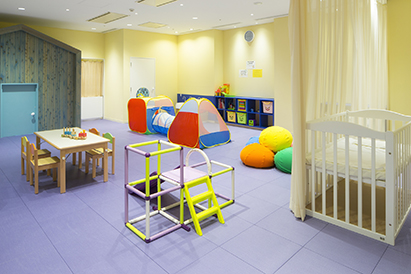 ▲Mama's Check! 夫婦団欒の食事タイムをしたいときにはナーサリールームに子どもを預けることもできたんです。温かい雰囲気のナーサリールームでは息子も嬉しそうに遊んでくれていました。