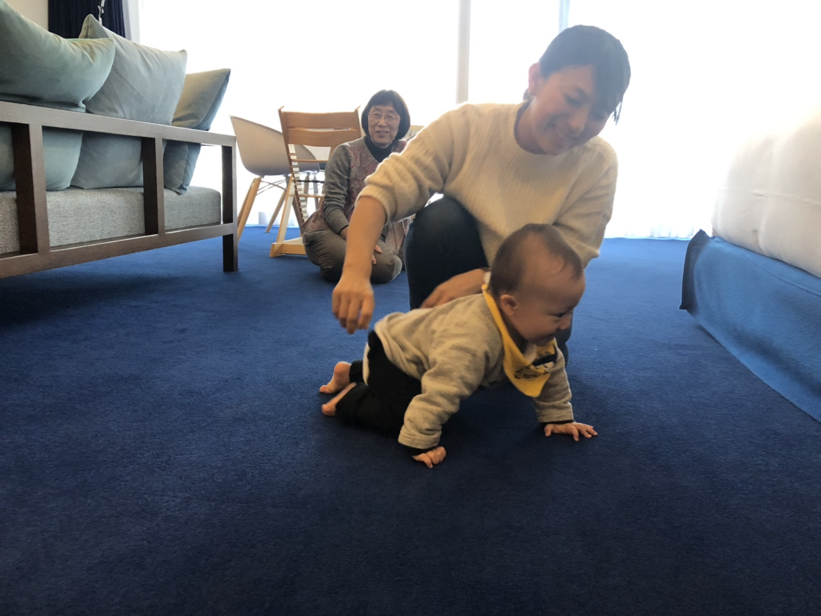 メインルームの床は全面がフカフカな絨毯になっていたので、まだつかまり立ちし始めたばかりの息子が転んでしまったときも大きなけがをせずにすみました! おかげさまで安心して自由にお部屋で遊ばせてあげられたので、家にいるときよりもリラックスできた気がします!