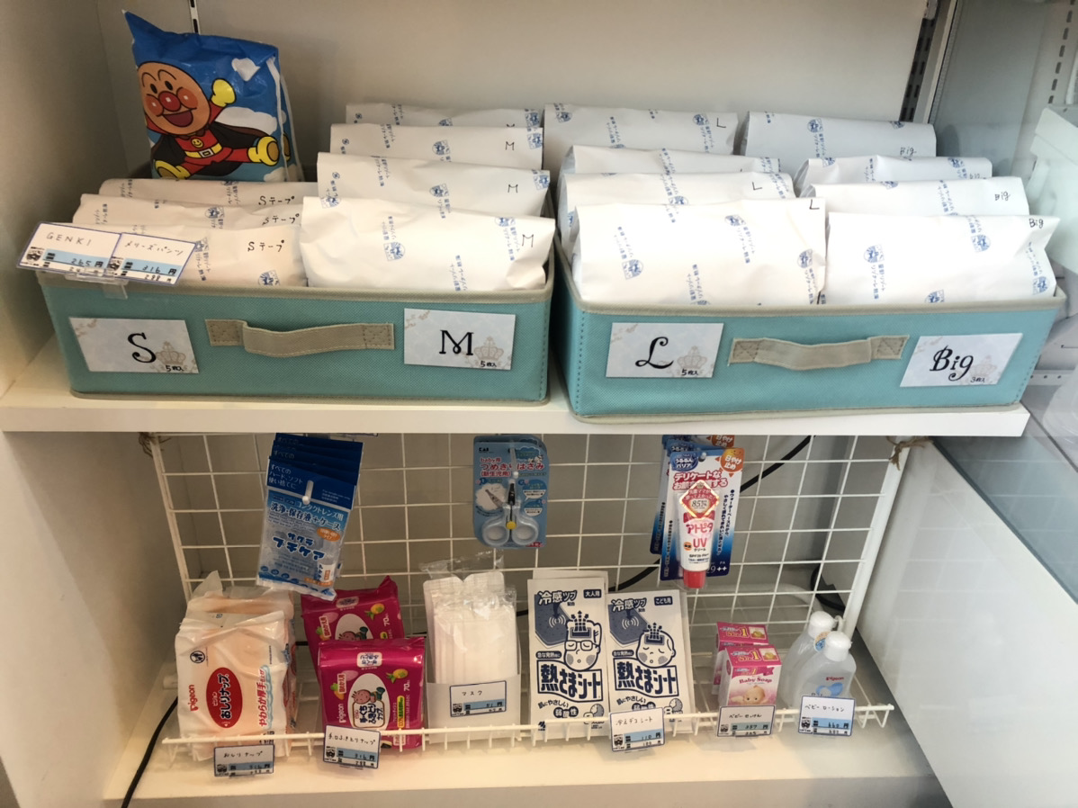 ★取り扱いアイテム:ミルクキューブ、哺乳瓶、赤ちゃん用ボディソープ、キッズTシャツ、キッズパンツ、離乳食ベビーローしゃん、つめきりはさみ、おしりふき、日焼け止め、ベビーせっけん、ベビー用飲料水、ベビー用むぎ茶、スイミングパンツ