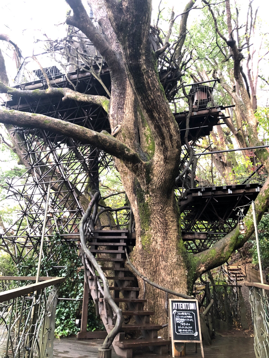 自然豊かで新鮮な空気であふれているプレイスポット! この日は雨で残念だったけれど、木の階段をのぼっていくとツリーハウスがあって、隠れ基地のようでした。わたしたち大人も童心にかえってワクワク感を満喫♪息子が大きくなって動きまわれるようになったら、もっと楽しめそうなのでぜったいにまた来たい!と思えた瞬間でした。