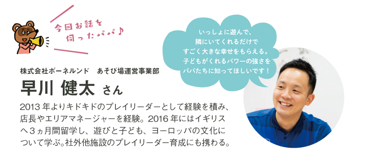 後編では、遊びを通して子どもが得られる心の強さややさしさ、また、早川さんの日頃の子育てのようすを伺いました♪