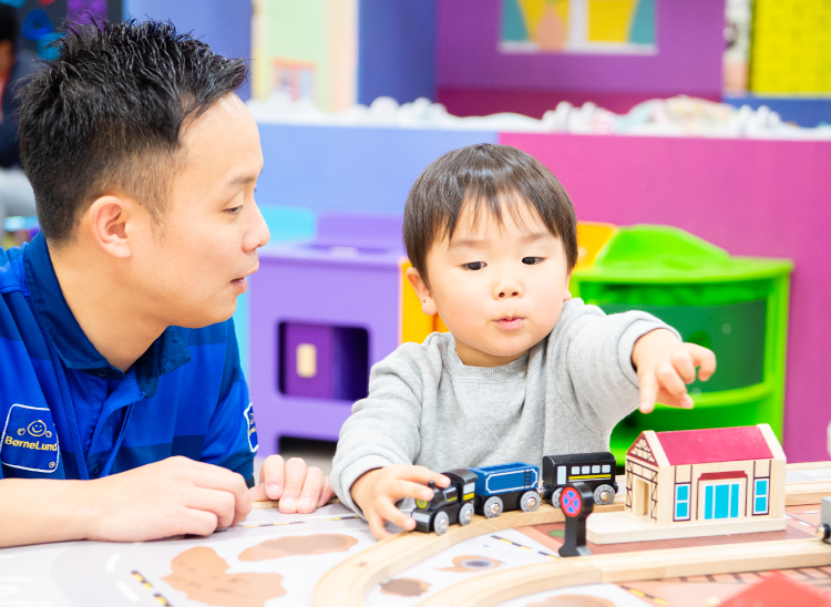 編集長(太田):遊びについて、気になったことをひとつよろしいですか。さっきそらくんが汽車のジオラマで遊んでいるときに、そらくんよりもちっちゃい子(1歳くらいの男の子)が、おそらく「ぼくも遊びたい」って汽車をつかもうとしていたんです。でも、その子のママはそらくんが集中して遊んでいるのを見て、子どもをジオラマからひょいっと離したんですね。ママとしては遠慮してくれたのだと思うのですが、子どもにとってどうなんでしょう?