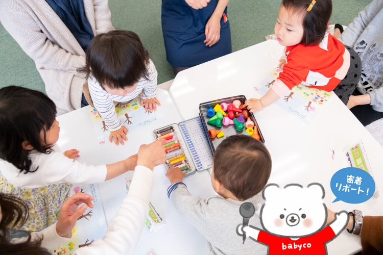 0歳から通える学研教室「0・1・2 Petit Pas」にbabyco編集部が1日密着♪ 赤ちゃんと通うはじめての教室選びに悩むママ、必見です!絵本の読み方を先生が見せてくれるから、ママと赤ちゃんがはじめて出会う絵本でも楽しめる!書店では出会えないくうちゃんえほんは、ママもはじめて見るお話ばかり。先生が読み方のお手本を見せてくれるから、お話の読み方のポイントがわかります。読み聞かせのポイント動きやイメージがわくように、オノマトペに合わせて絵本を動かしたり声の出し方を変えたりしてみましょう♪月齢 に応じて作業内容を合わせてくれる♪いろいろな道具を体験させてもらえる機会にも「はさみはもう少し大きくなったらね」と、作業内容は月齢に合わせてくれるから安心。のりやクレヨンなどの道具を使ったり、ぬったり貼ったりちぎったり、お友だちと先生が一緒だから安心して楽しめます。好奇心を育てる遊びのコツワークのどこをぬるか、どこに貼るかを赤ちゃんが自分で決めることは、将来の自主性にもつながるんですよイヤイヤ期だって赤ちゃんが成長している証!周囲のママと励まし合いながら悩みを共有できる取材当日、「イヤイヤ期に突入して…」と悩むママにも、山田先生は「イヤイヤ期は子どもが自分で物を選ぶ絶好の機会ですよ」とポジティブ! ひとりひとりの発達に合ったアドバイスをくれます。ママの寄り添い方「悩んだら学研の先生に聞きにいこう!」と頼ってくれるご家族も。ママたちの憩いの場になればうれしいです教育に関する出版やサービスを多数手がける学研による、0歳から通える教室です。絵本の読み聞かせ、親子で楽しむワーク、教育や子育てに関する充実したサポートが540円(税込)で体験できます。
