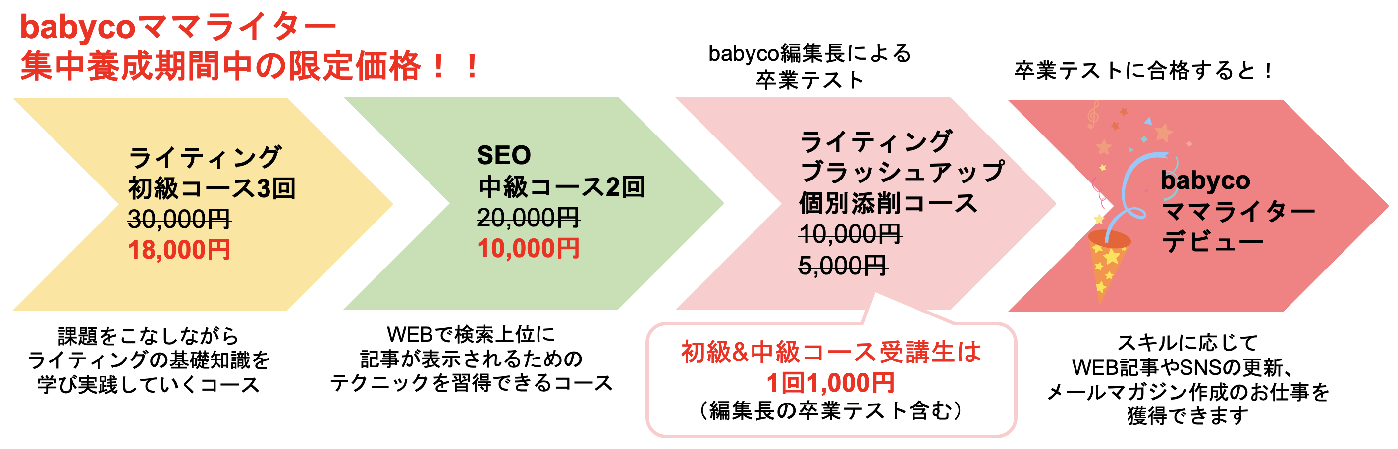 babycoライター集中養成期間中のため、限定価格で受付中です!!
