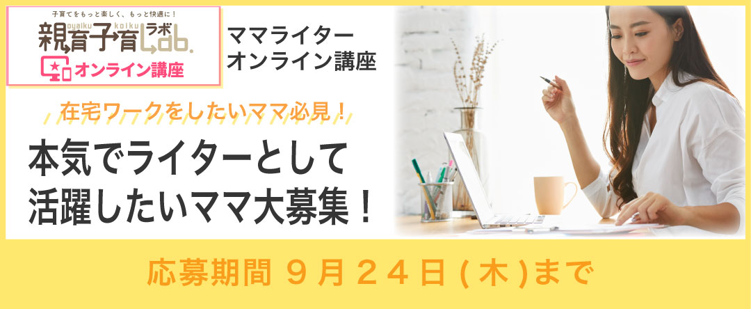 在宅で副業がしたい! 働いて少しでも家計の足しにしたい! そんながんばるママたちに向けた『ママライター養成講座 初級コース』を9月29日(火)から3回実施いたします!