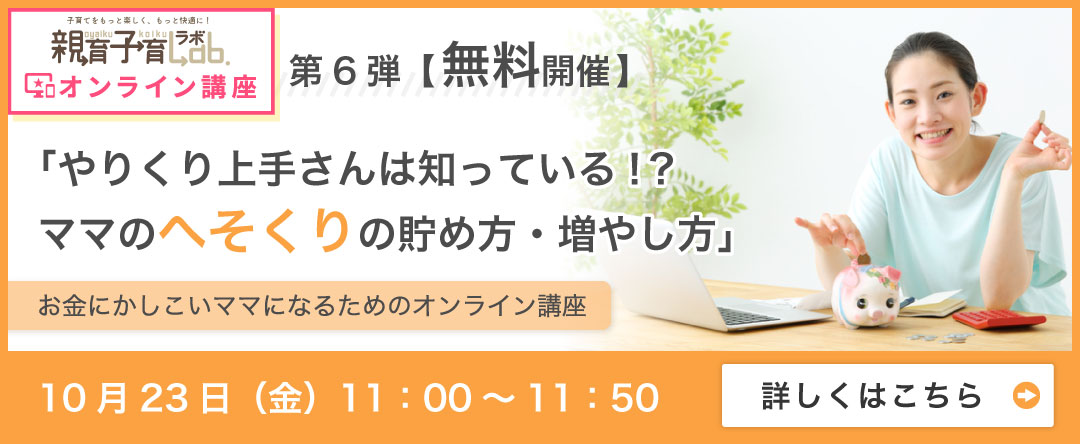 10/23参加無料!「やりくり上手さんは知っている!?ママのへそくりの貯め方・増やし方」オンライン講座申込受付開始!